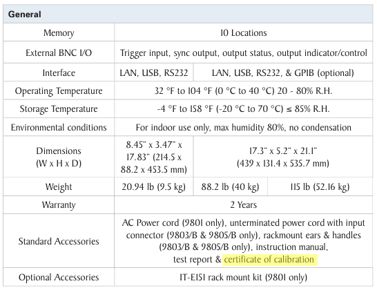 はい、9801 、9803 、9803B 、9805 および 9805B は、サプライヤの校正証明書が付属しています。