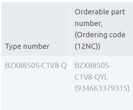 BZX8850S-C1V8-QYL is the orderable part number for BZX8850S-C1V8-Q