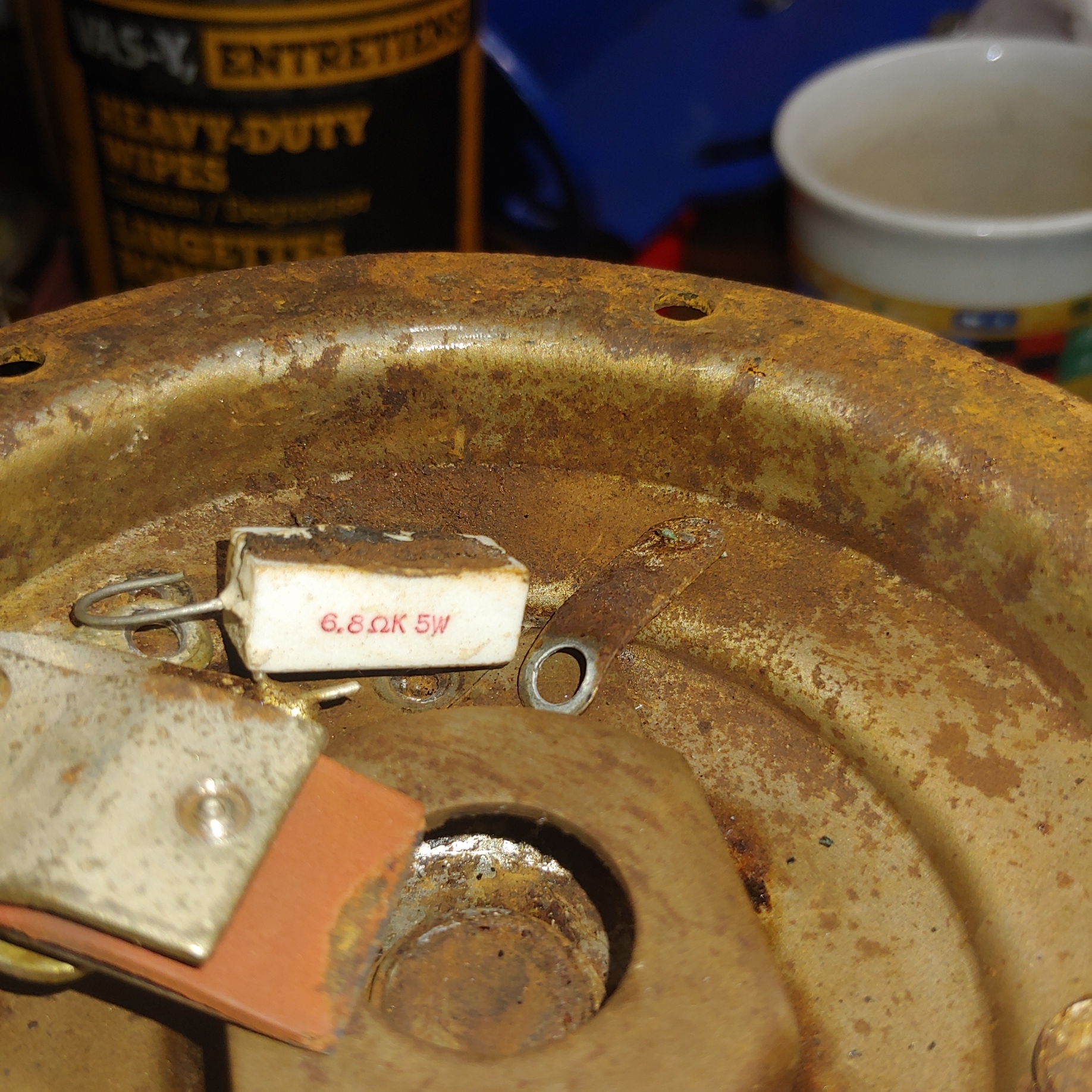 I am restoring an old automotive horn. I have wound a new coil for it and I just need this component shown. There is a set of points just to the left. I would assume this would be a capacitor but I’m not sure. Any help would be appreciated. Also not sure if this is a 6 or 12 volt horn.