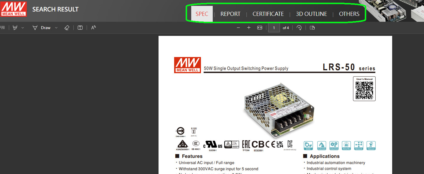 Need to quickly grab a Test Report, CB Certificate, or a 3D STEP file for a Mean Well product?