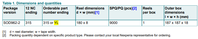 The suffix “YL” in the orderable part number PESD3V3S1BSFYL refers to the packaging configuration: