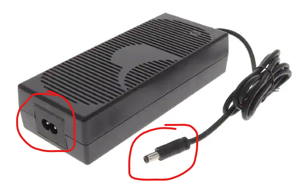 The Input Power Cord is sold separately and will have to be chosen based on required wall connector type being utilized. The output connector would also have to be chosen based on the adapter input connector type chosen, along with reviewing all other datasheet specifications to assure product is appropriate for the specific application.