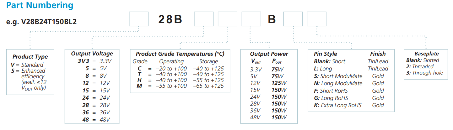 For the V28B24T150BG2 the G calls out long pin with Gold finish.