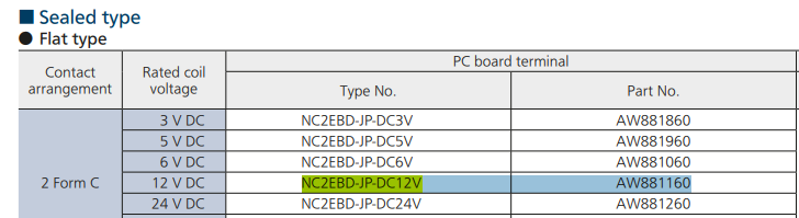 Another part number for NC2EBD-JP-DC12V is AW881160.